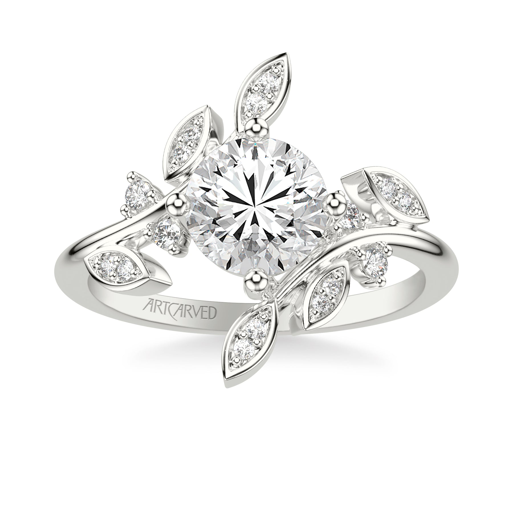Floral Engagement Ring with Bypass Diamond Petals and Floating Diamond Accents