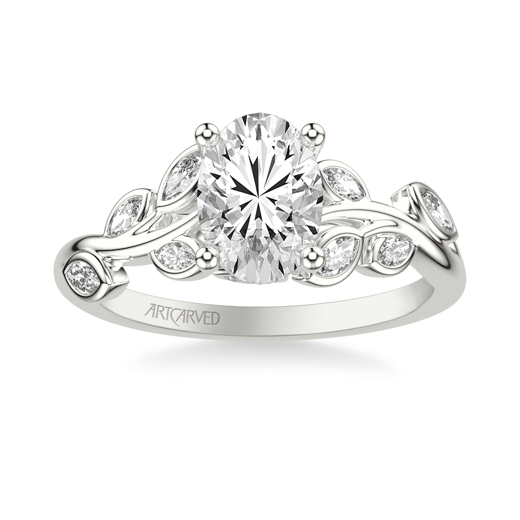 Floral Engagement Ring with Bezel Set Marquise Diamond Petals and Hidden Diamond Accents