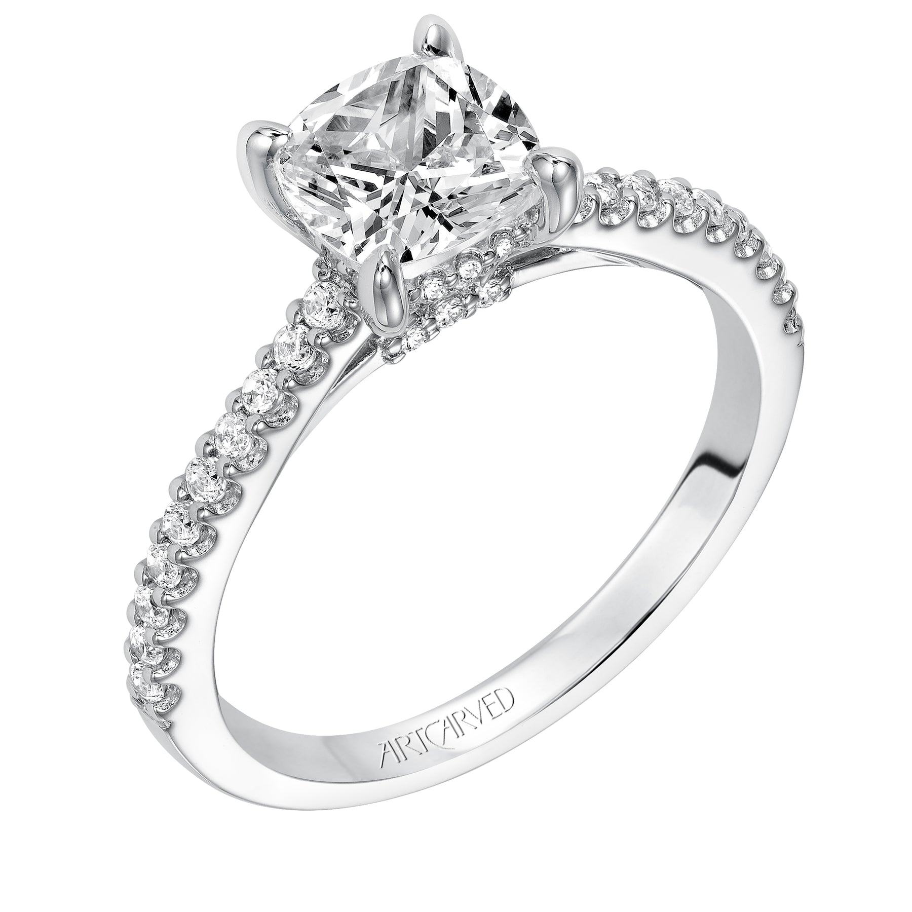 31-V574GRW-E.01 - ARTCARVED - Willa, Classic prong set diamond engagement ring with diamond detailed crown and bridge with diamond accented shank