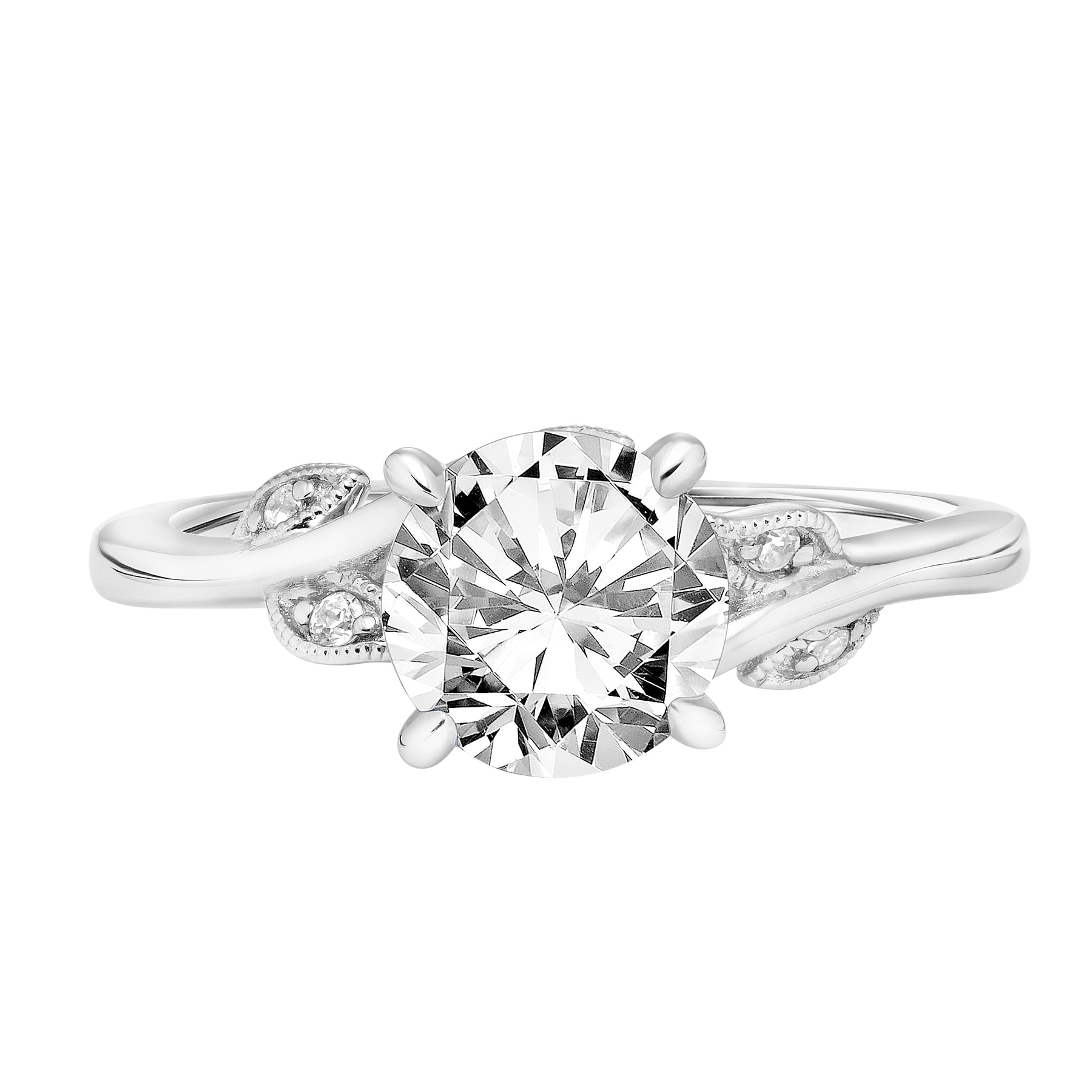 31-V783GRW-E.01 - ARTCARVED - Floral Engagement Ring with Diamond and Milgrain Accented Petal Gallery and Polished Shank