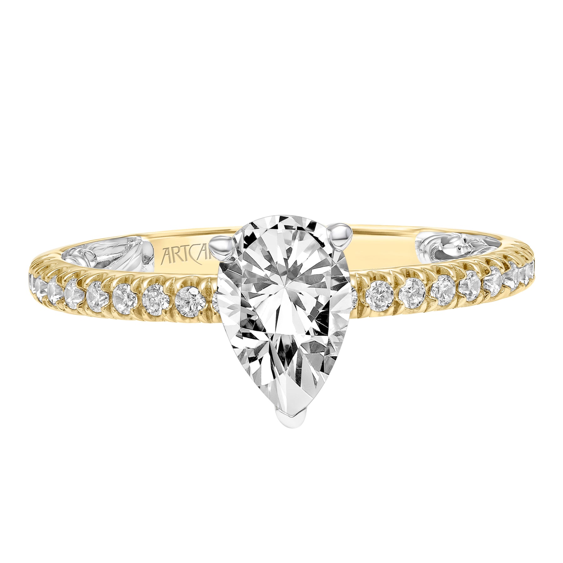 Lyric Engagement Ring with Inner Carved details and Diamond Shank