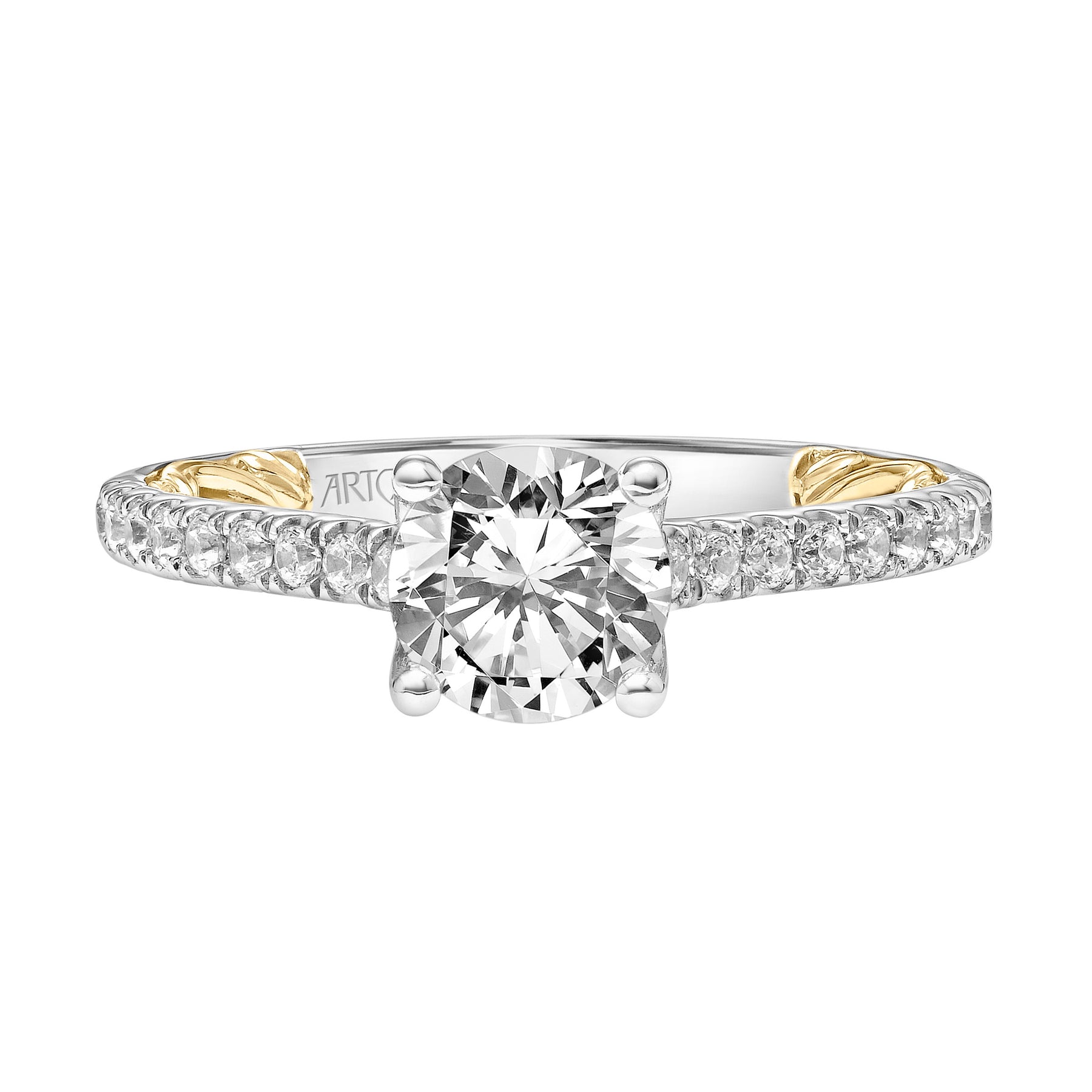 Lyric Engagement Ring with Diamond Accent basket and Inner Carved details and Graduated Diamond Shank