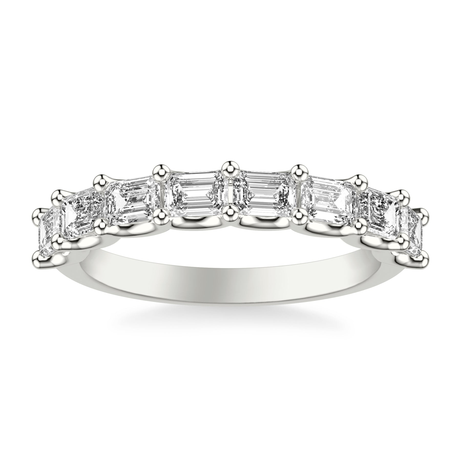 Anniversary Band with East/West Emerald Diamonds and Double Shared Prong