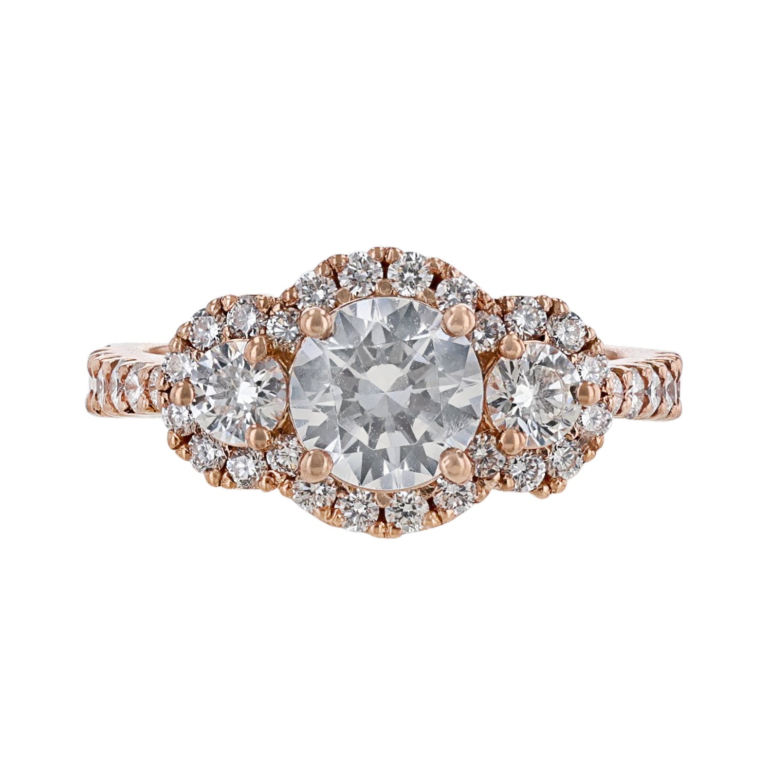 This mounting is 14K rose gold featuring 2 round cut diamonds weighing 0.31 carat. Also features 38 round cut diamonds weighing 0.72 carat. All diamonds are prong set.