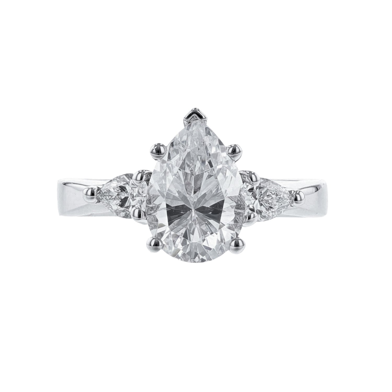 This mounting is 14K white gold featuring 2 pear shape diamonds weighing 0.38 carat. Diamonds are prong set.\n\n