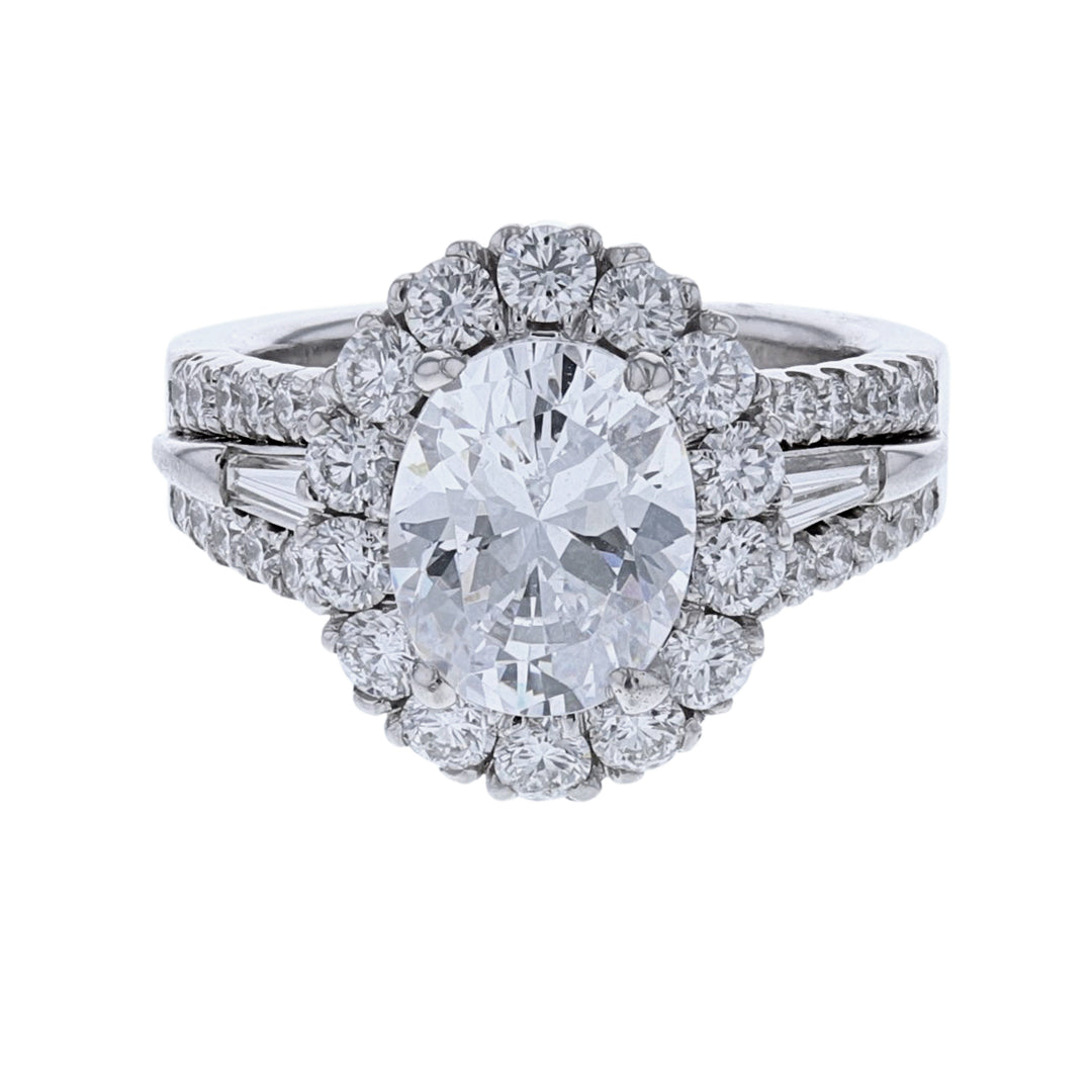 14K White Gold Oval Halo Diamond Ring, 0.98ct.