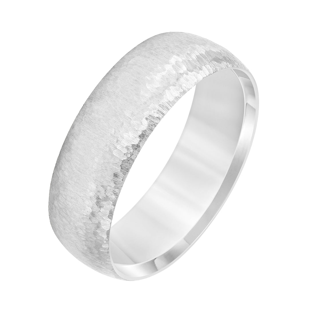 Comfort fit two tone wedding band with brushed hammered finish and milgrain Please note hand hammered styles will have slight variations due to the nature of the manufacturing process