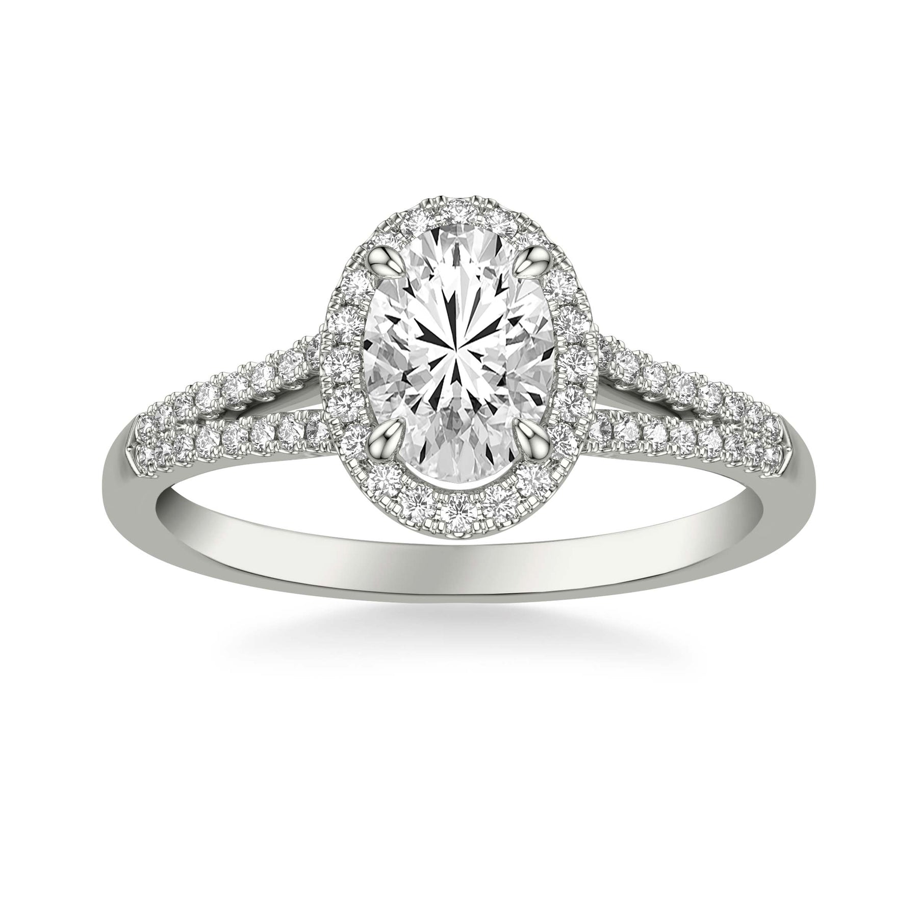 Contemporary Oval Halo Split Shank Diamond Engagement Ring