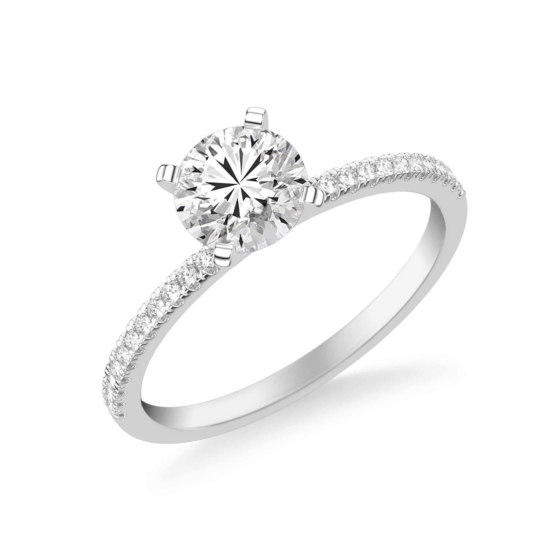 Classic Solitaire Engagement Ring with Diamond Shank. Center Stone is not included.