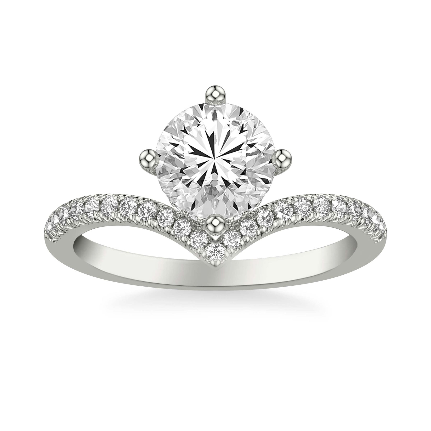 Contemporary Floating Diamond Engagement Ring with V Curved Diamond Shank. Center Stone is not included.