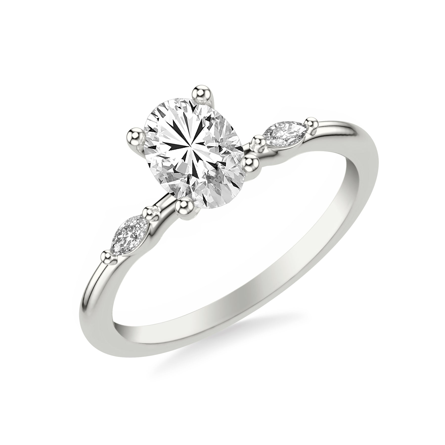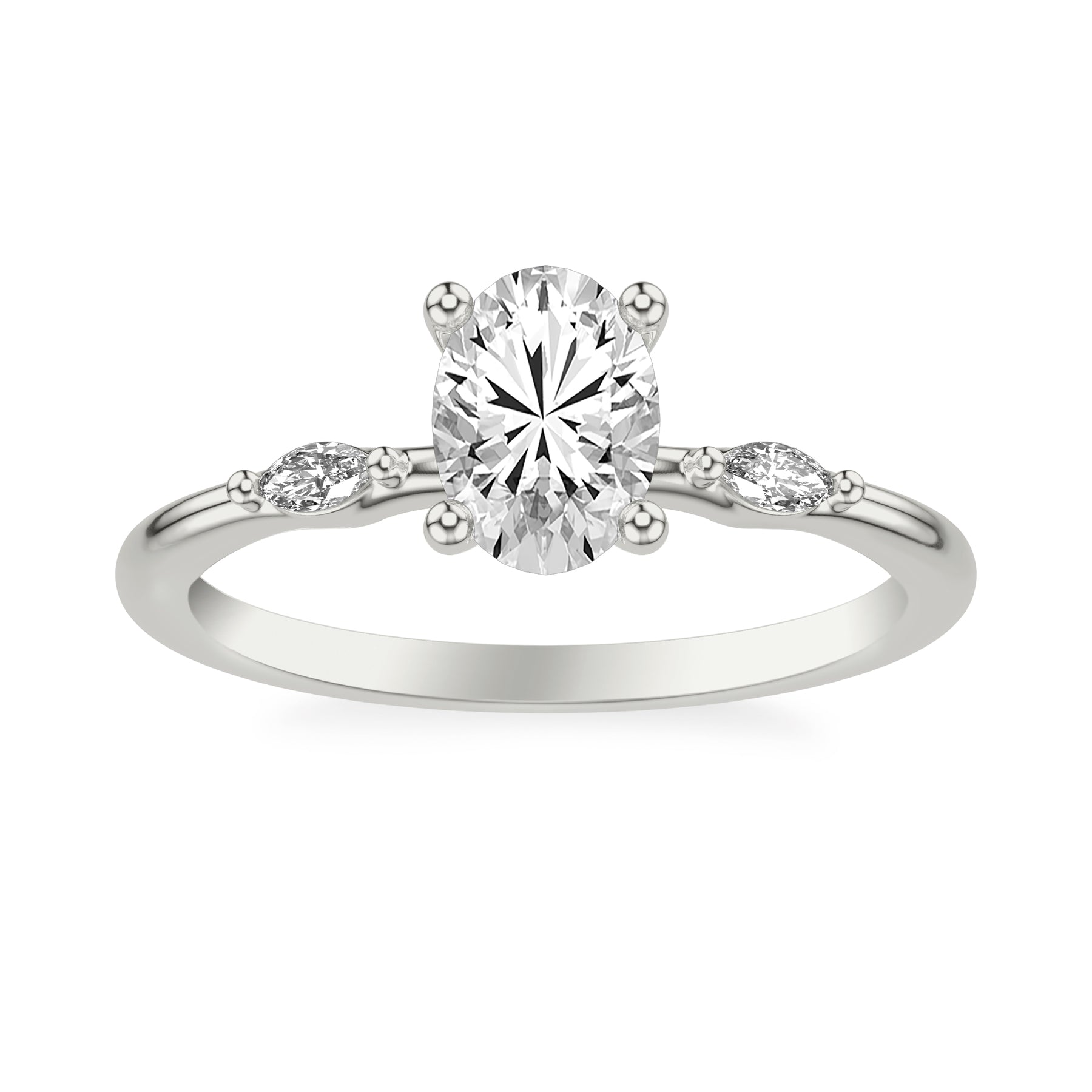Contemporary Engagement Ring with Marquise Accent Diamonds. Center Stone is not included.