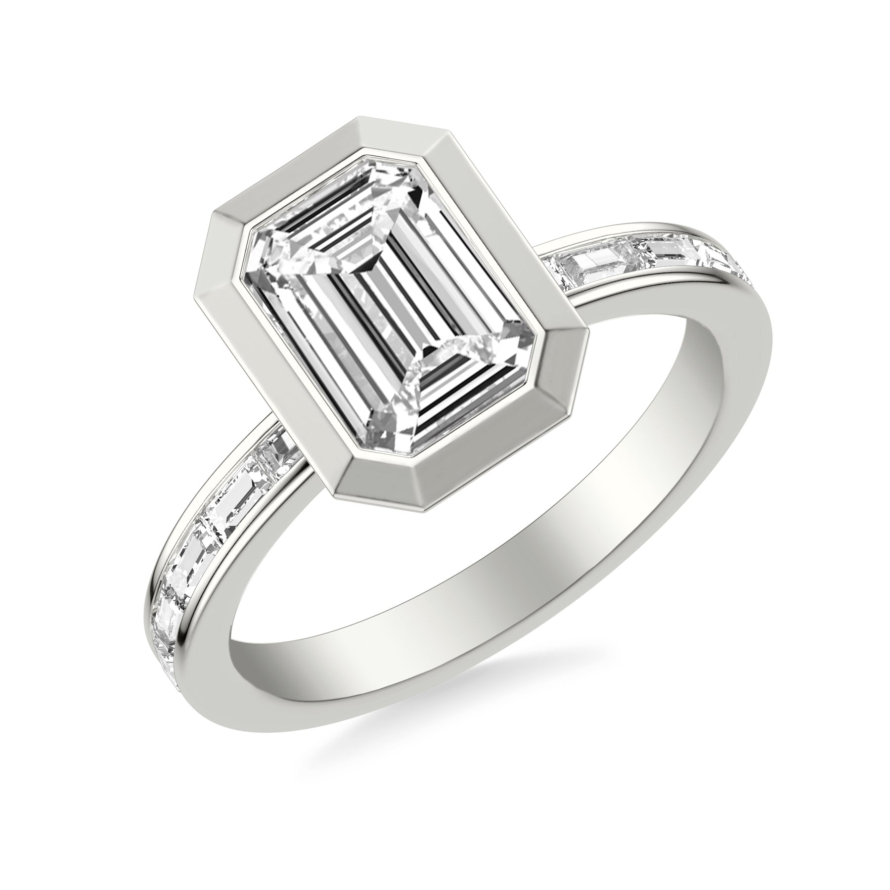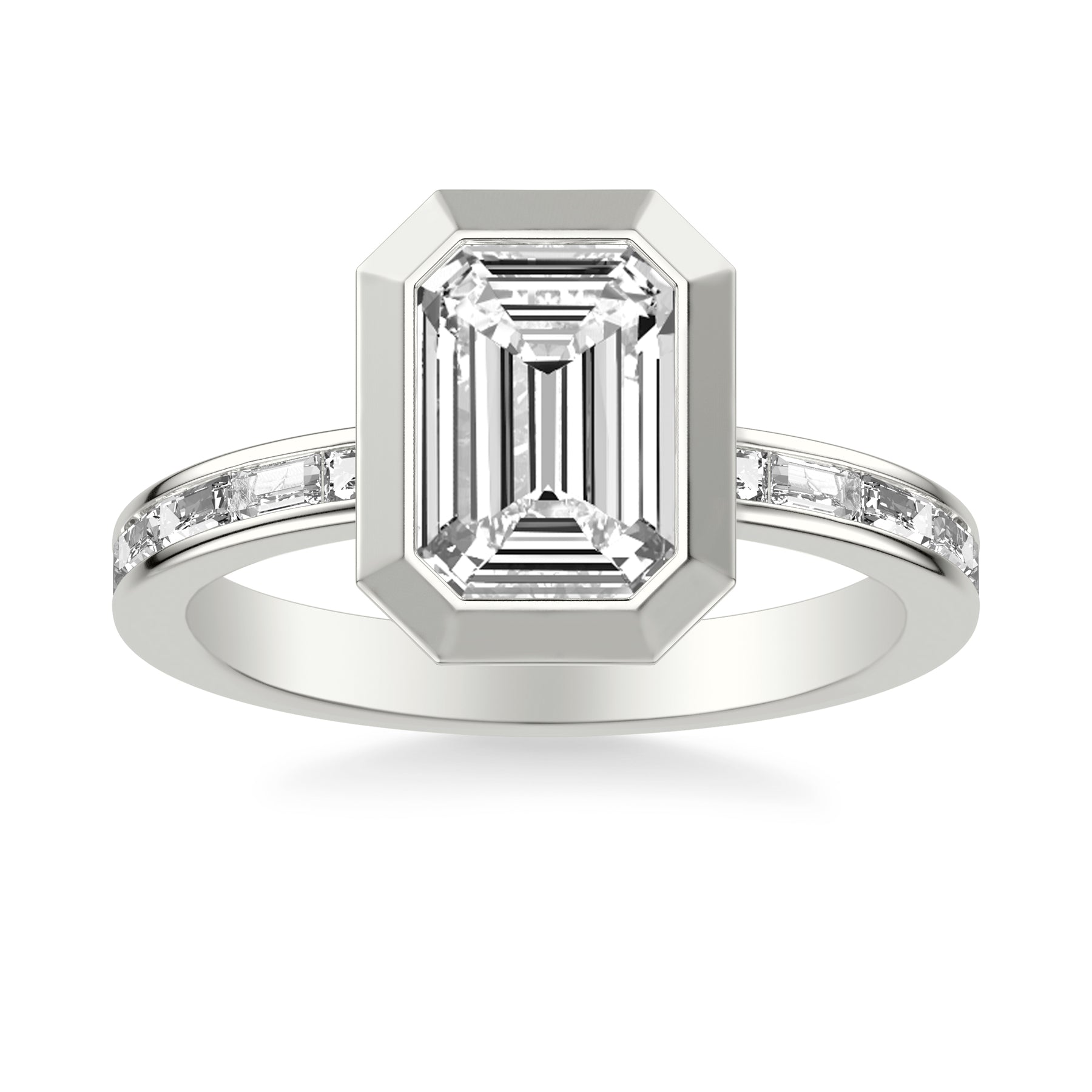 Contemporary Bezel Set Engagement Ring with Channel Set Baguette Diamond Shank
