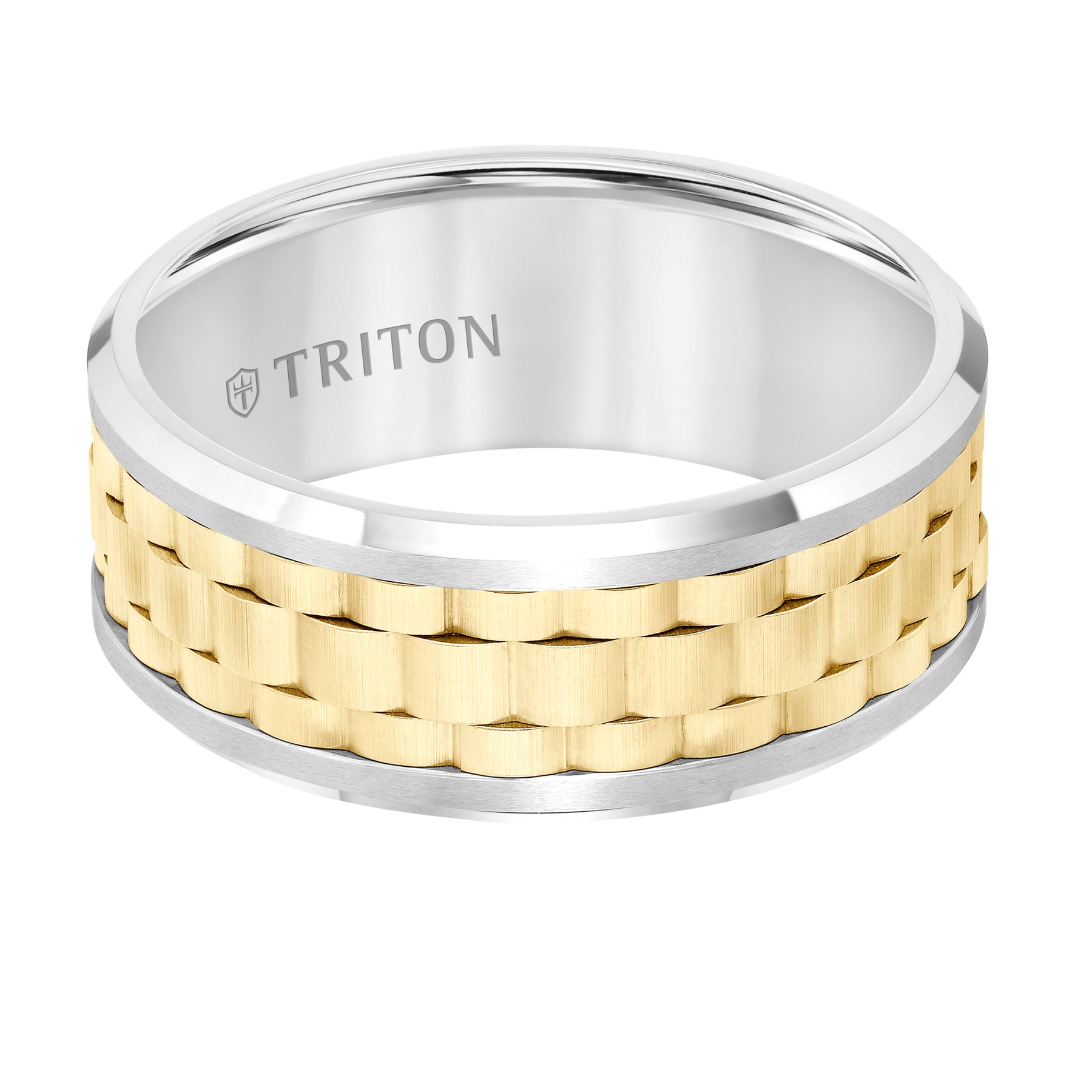 | Additional Description | 9MM White Tungsten Carbide Flat Comfort Fit Band with Yellow Basket Weave Center and Flat Rims |