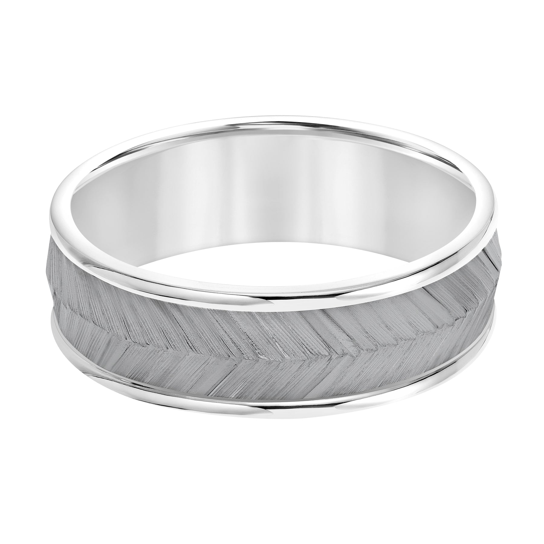 | Additional Description | Men's Band with Black Rodium Center with Chevron Texture and Bright Round Edge |