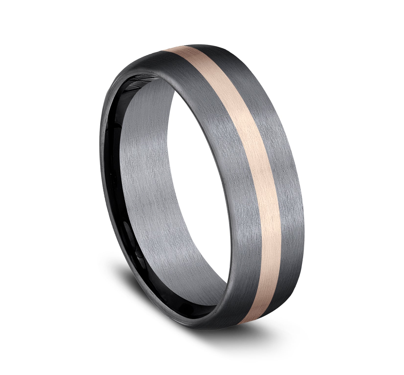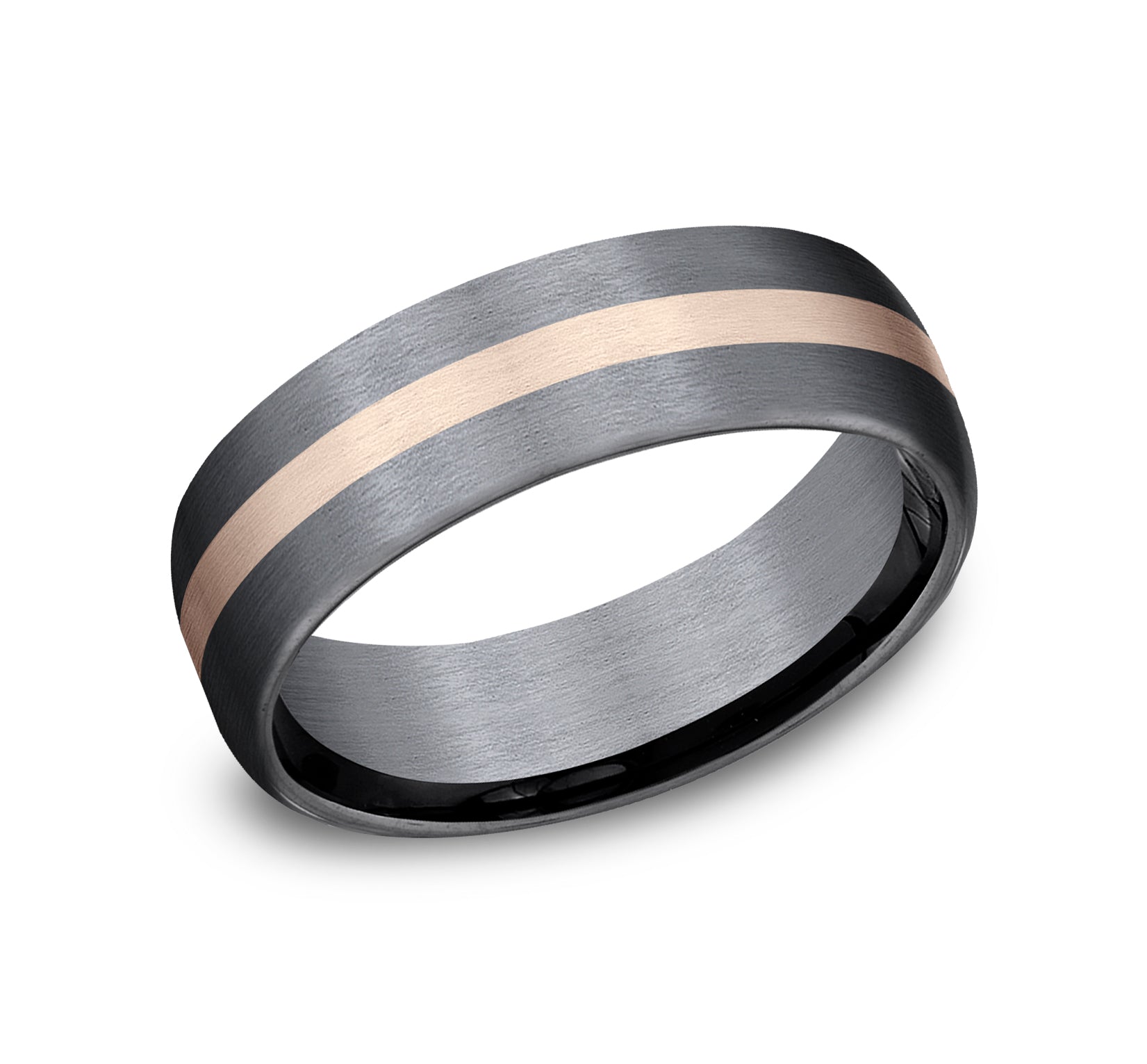 6.5mm, Grey Tantalum and 14K Rose Gold Satin finish with center stripe