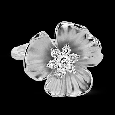 This 18K textured flower diam fashion ring has 0.33 ctw of white diam from our nature collection