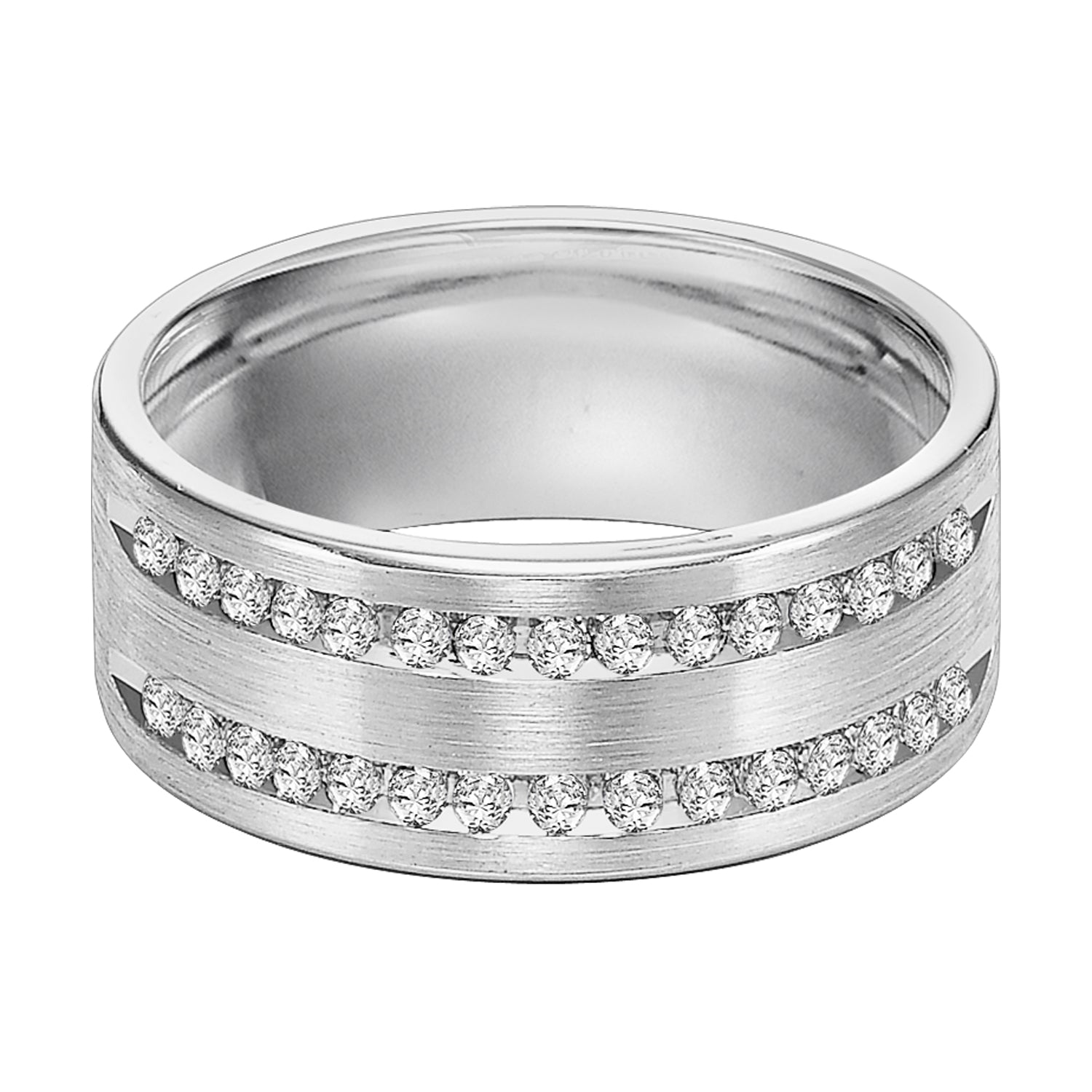 | Additional Description | This 2 row, 30 stone diamond wedding band is Comfort Fit and features a satin finish and rolled edges for a grand look sure to make a statement |
