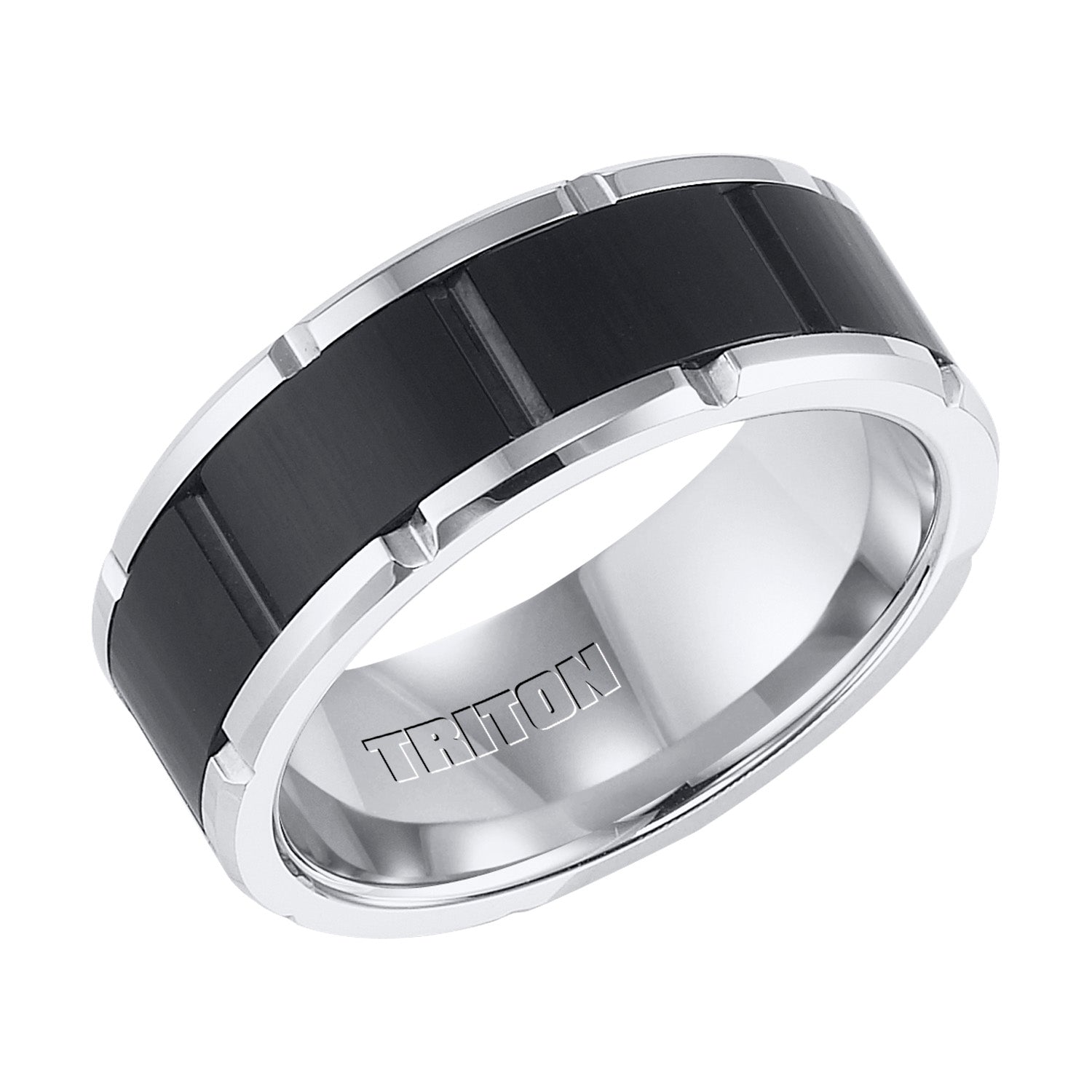 | Additional Description | Black and White Tungsten Carbide Comfort Fit Band with Brick Engraving |