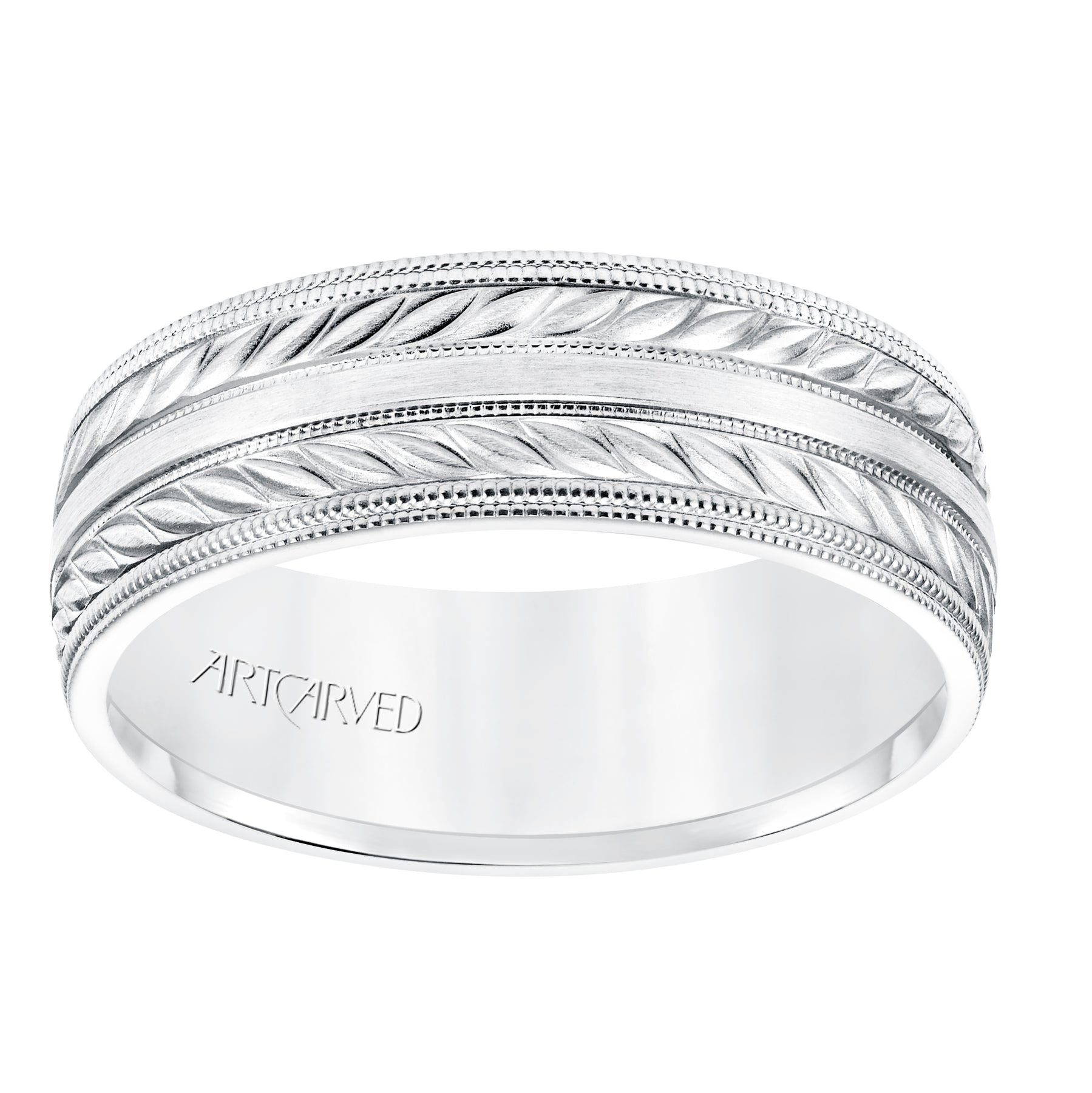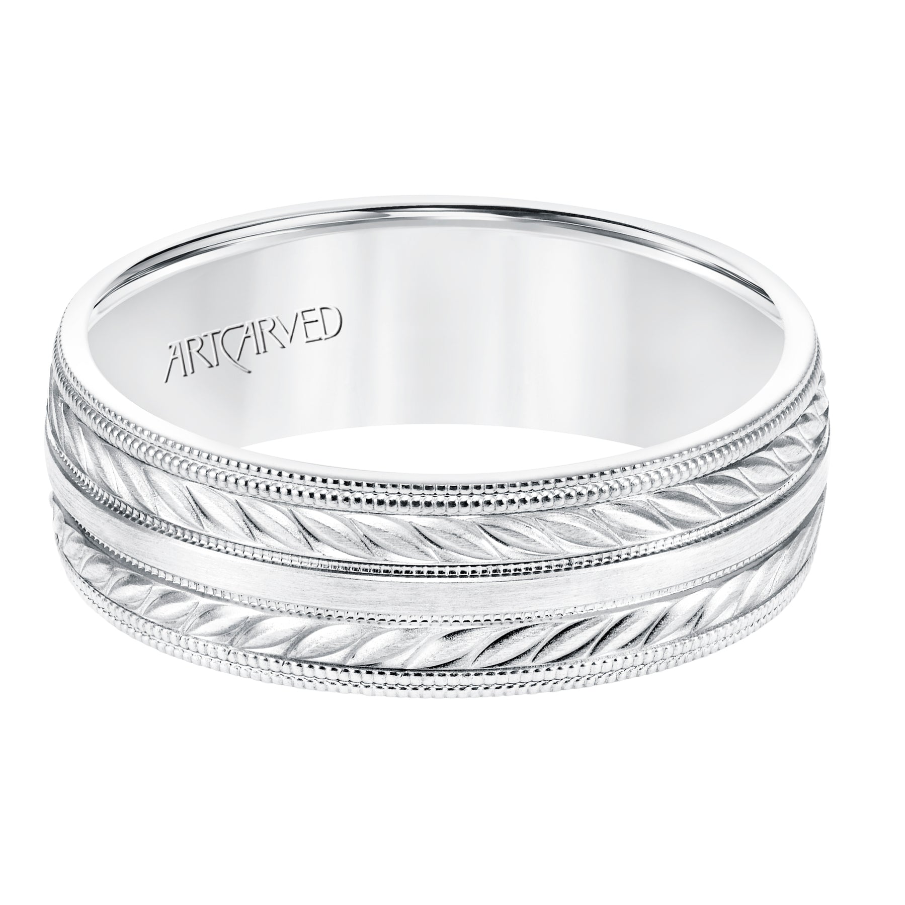 Additional Description 7MM Comfort Fit Wedding Band with a Wheat Motif and Milgrain Accent with Milgrain Edges