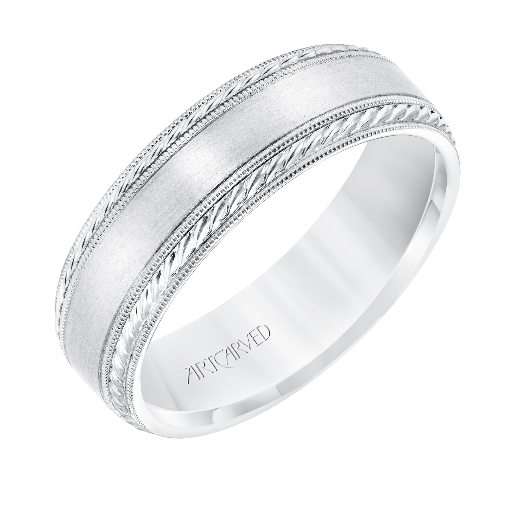 | Additional Description | 6.5 MM Comfort Fit Wedding Band with Satin Finish, Rope and Milgrain Accent with Milgrain Edges |
