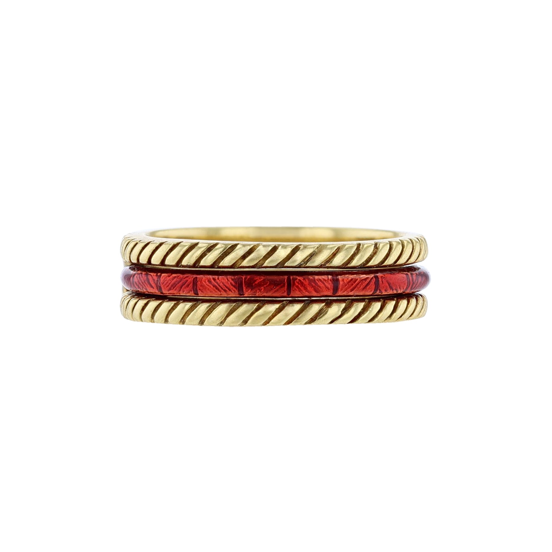 18K Yellow Gold Diamond Ring Set, Red Enamel