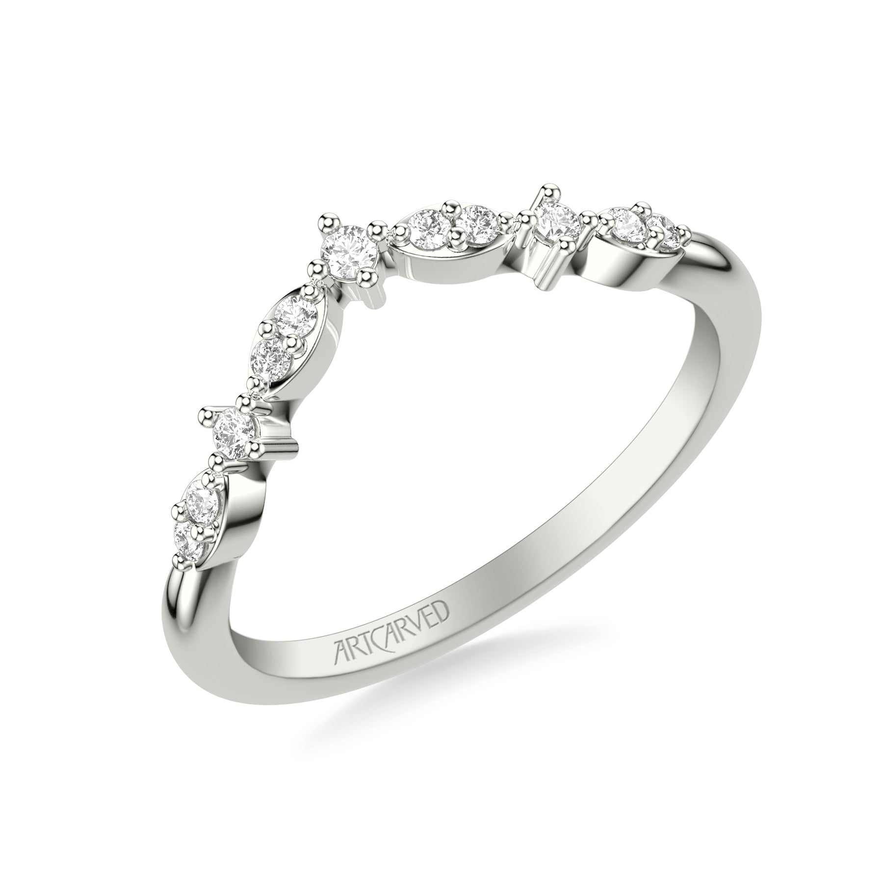 31-V1059W-L.00 - ARTCARVED - Floral Curved Wedding Band with Prong Set Round Diamonds