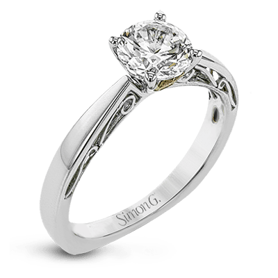 Additional Description This sleek, elegant white gold ring features delicate filigree detailing to accentuate its single, central stone. Center stone not included. Our rings can be designed to fit any center stone.