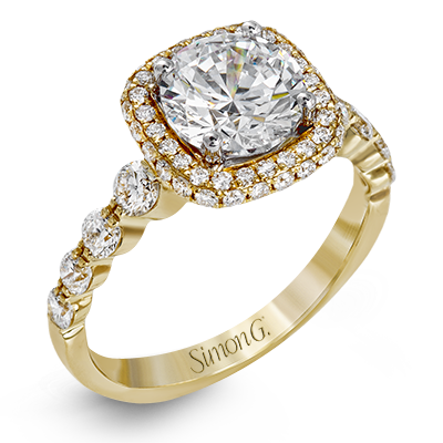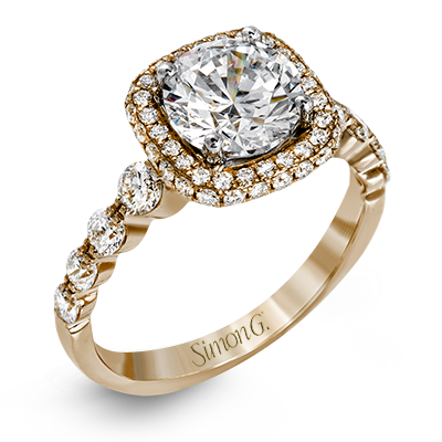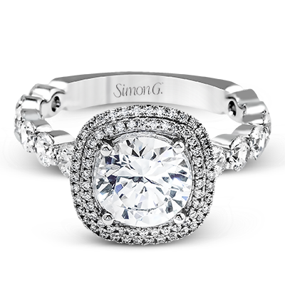 Additional Description | The delicate design of this classic white gold engagement ring features a sparkling pave halo accented with .86 ctw of shimmering round cut white diamonds. Center stone not included. Our rings can be designed to fit any center stone. |