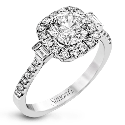 Additional Description This white gold ring glitters with accents of .41 ctw of round white diamonds and .14 ctw of baguette shaped diamonds for a timelessly elegant look. Center stone not included. Our rings can be designed to fit any center stone.
