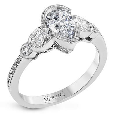 Additional Description | This lovely contemporary design features white gold and .14 ctw of round white diamonds and .42 ctw of oval shaped white diamonds as well as delicate milgrain edging around its centerpiece. Center stone not included. Our rings can be designed to fit any center stone. |
