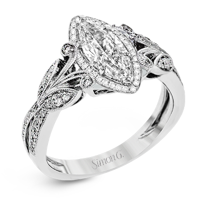 Additional Description | This amazing 18k white gold engagement ring features vintage-inspired design elements set with .28 ctw of white diamonds. Center stone not included. Our rings can be designed to fit any center stone. |