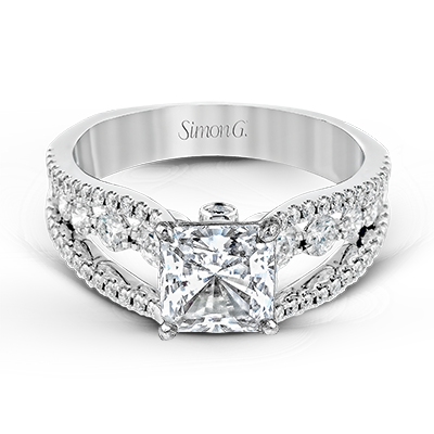 Additional Description | The lovely vintage style of this white gold engagement ring is further enhanced by .91 ctw of shimmering round cut diamonds. Center stone not included. Our rings can be designed to fit any center stone. |