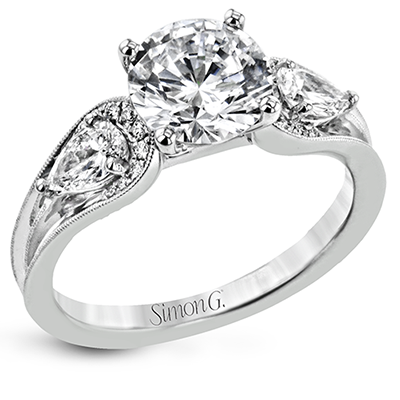 Additional Description | This modern 3 stone engagement ring takes a Round center and is flanked by 2 pear shaped diamonds 0.36 ctw., and 0.06 ctw of round diamonds Center stone not included. Our rings can be designed to fit any center stone. |