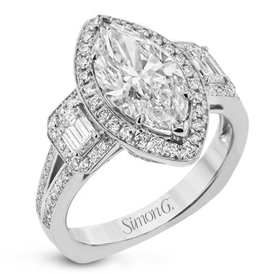 Additional Description | This impressive white gold ring features .43 ctw emerald cut side diamonds and is accented with .38 ctw round cut diamonds. Center stone not included. Our rings can be designed to fit any center stone. |