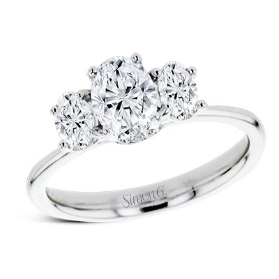 Additional Description | This 18k white gold engagement ring is a updated take on a classic three stone design, this time rendered with three sparkling oval shaped diamonds. Center stone not included. Our rings can be designed to fit any center stone. |