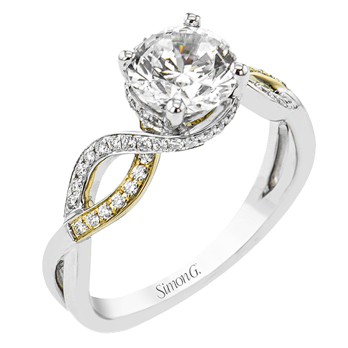 Additional Description 18K White and Yellow Gold intertwined engagement ring featuring .20cttw diamonds.(Center stone sold separately) Center stone not included. Our rings can be designed to fit any center stone.