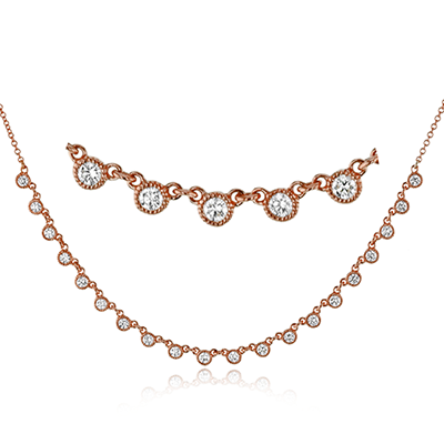 Additional Description | A line of .61 ctw bezel set diamonds lay gracefully across the clavicle in this 18k yellow gold necklace that is perfect for layering. |