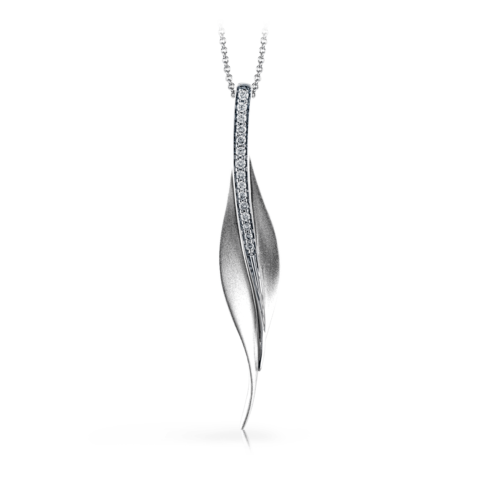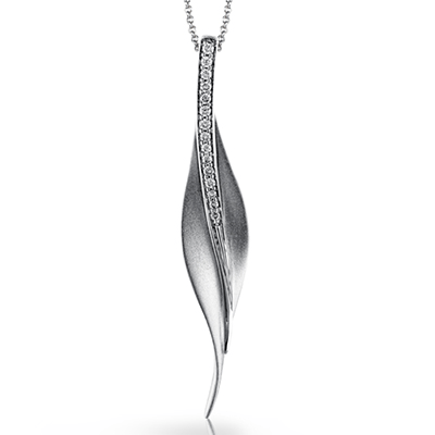 Additional Description A sleek, svelte style highlights this modern leaf-like pendant, set with a column of .13 ctw of dazzling white diamonds.