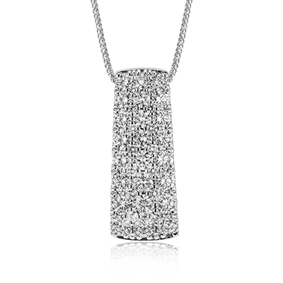 This shimmering white gold pendant dazzles with an incredible 1.50 ctw of white diamonds set into its surface
