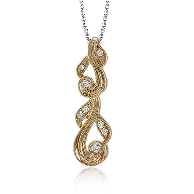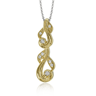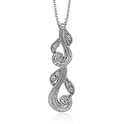 Additional Description | This 18k white gold pendant has a filigree design accented with vintage-inspired milgrain and .17 ctw of white round diamonds. |