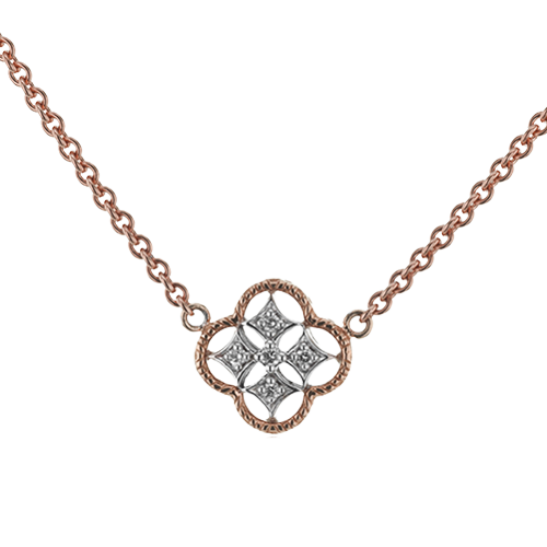 Additional Description | This charming necklace features a delicate design of two-tone gold set with .04 ctw of white diamonds. |