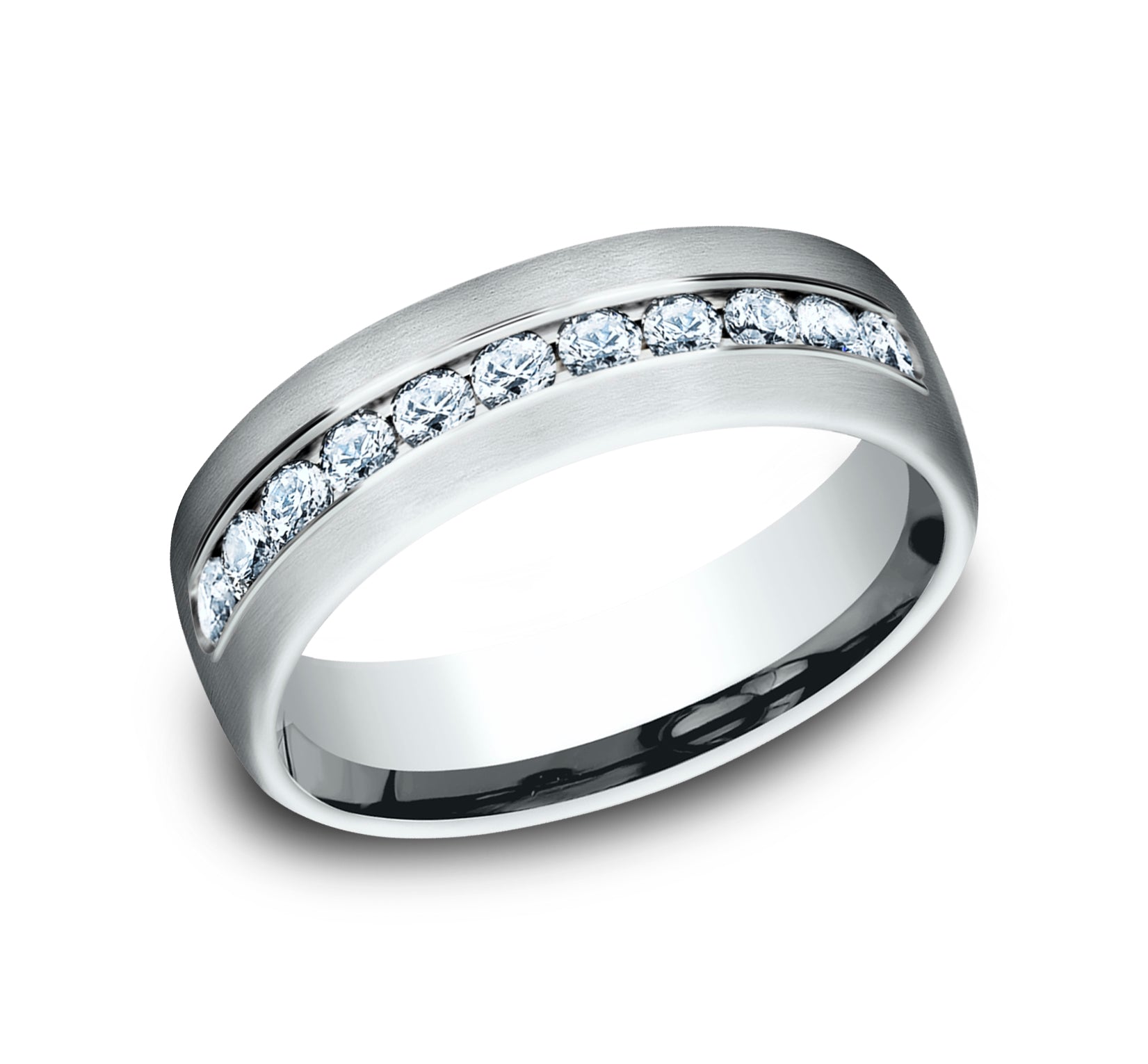 Additional Description | 7.5mm, Comfort fit 14K White Gold Satin finish 11 channel set diamonds Carat weight is .66ct Clarity SI1-2, Color GH |
