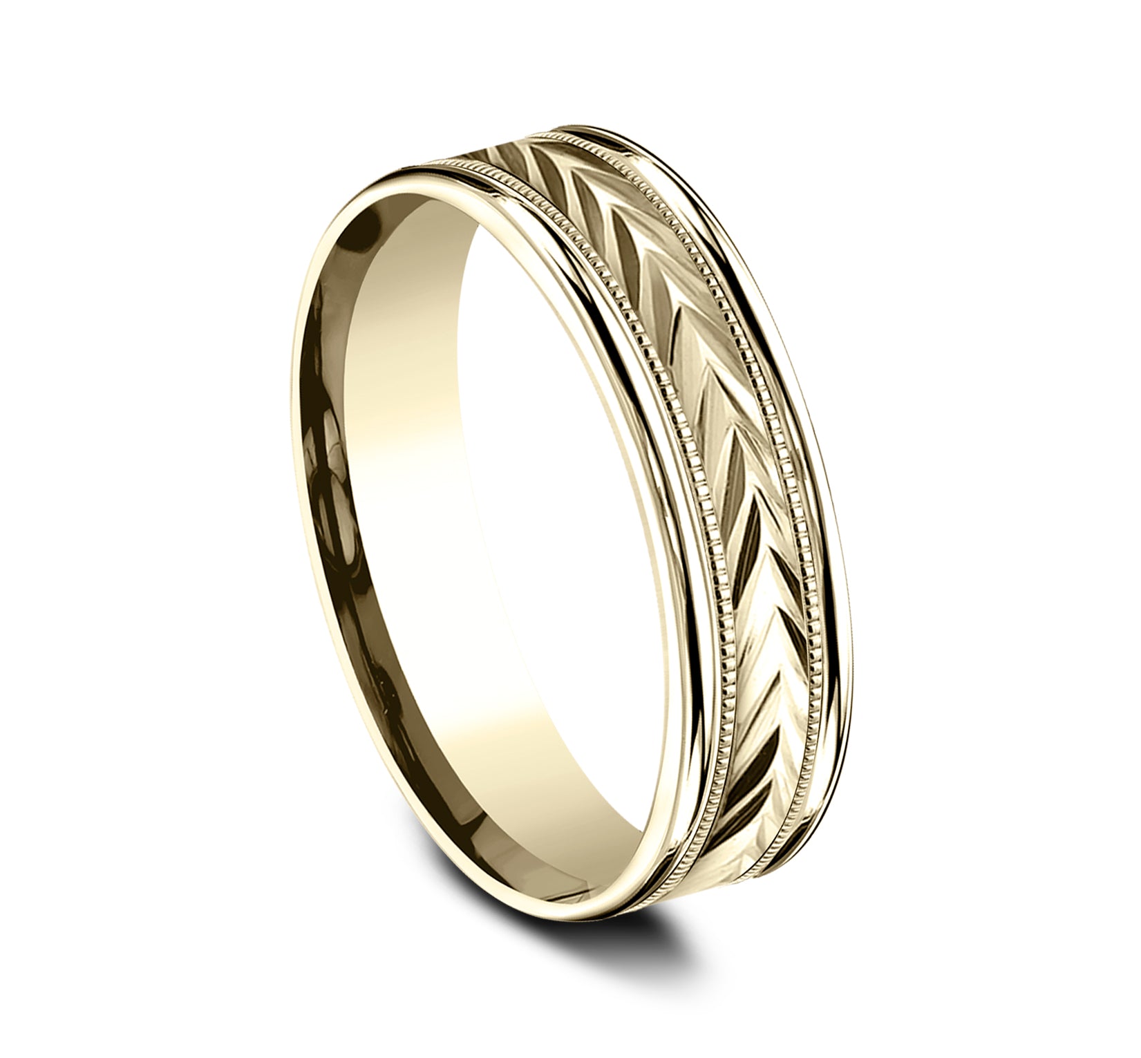 6mm, Comfort fit 14K Yellow Gold Wheat pattern with milgrain detail, polished round edges