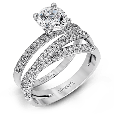 Additional Description This impressive contemporary white gold engagement ring and wedding band set are emphasized by 1.00 ctw of dazzling round cut white diamonds. Center stone not included. Our rings can be designed to fit any center stone.