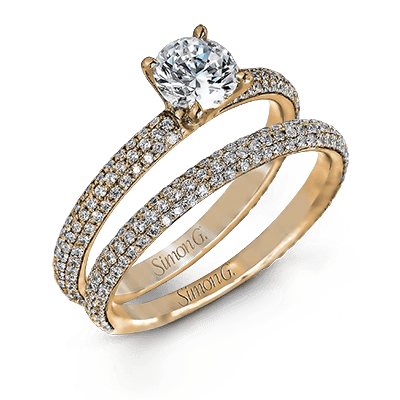 Additional Description | Reflecting a simple yet elegant classic design, this white gold engagement ring and band is accented by .86 ctw white diamonds. Center stone not included. Our rings can be designed to fit any center stone. |