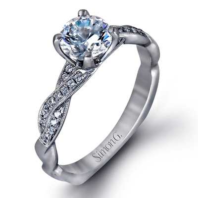 Additional Description Featuring a modern design, this elegant white gold engagement ring and wedding band set are accentuated by .22 ctw of shimmering round cut white diamonds. Center stone not included. Our rings can be designed to fit any center stone.