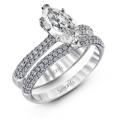 Additional Description | The classic design of this white gold engagement ring and wedding band set is emphasized by .72 ctw round cut white diamonds. Center stone not included. Our rings can be designed to fit any center stone. |