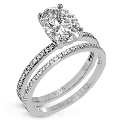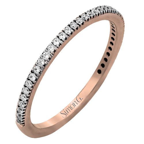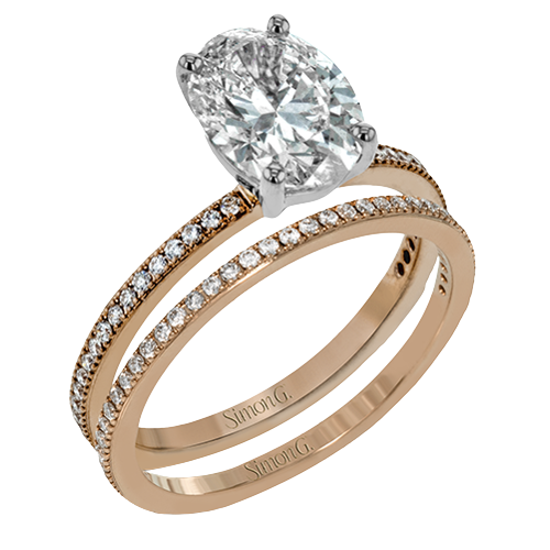 Additional Description The classic, streamlined design of this 18k rose gold wedding set is accented by .30 ctw of sparkling white round brilliant diamonds. Center stone not included. Our rings can be designed to fit any center stone.