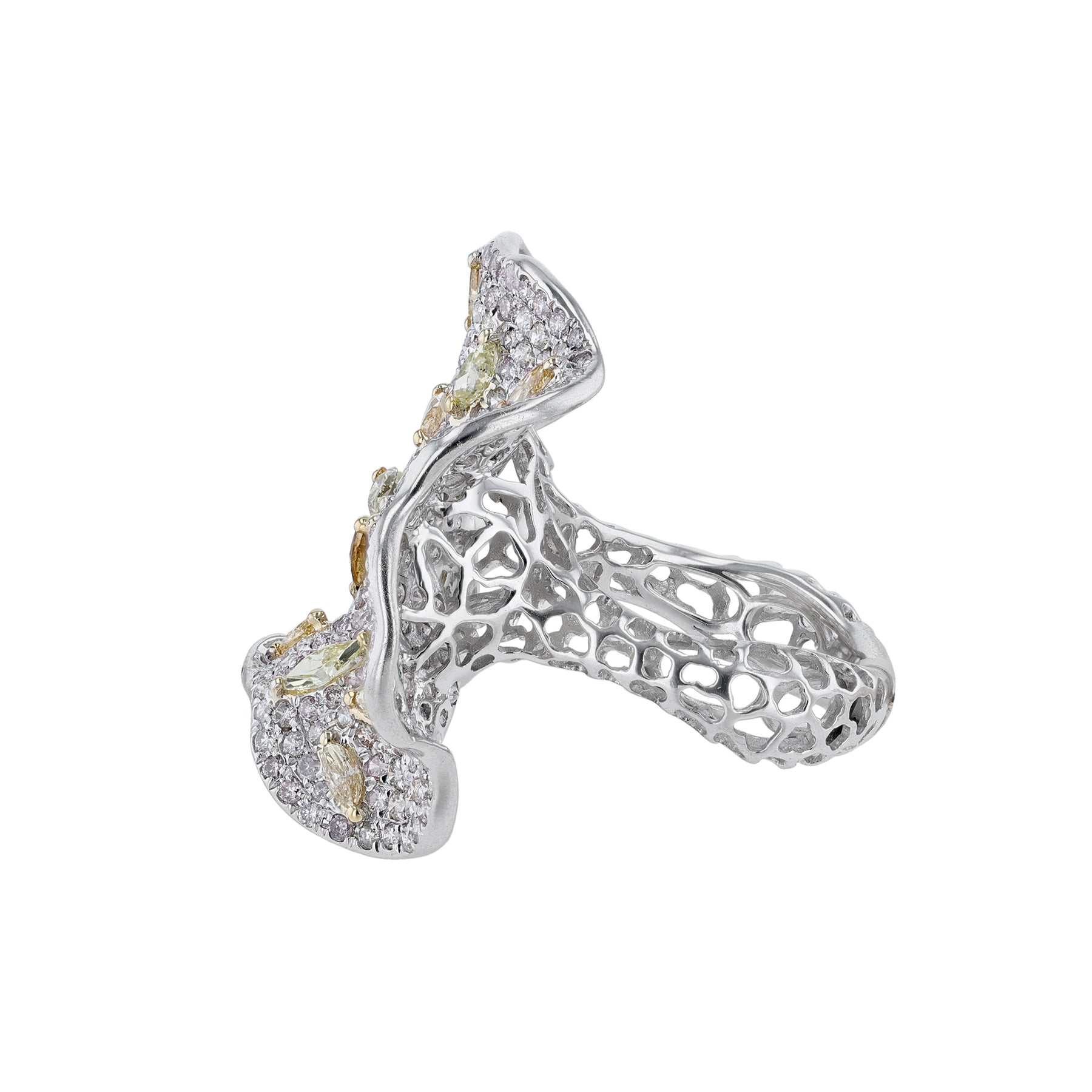 White & Yellow Diamond Wavy Disc Ring, 5.73ct.